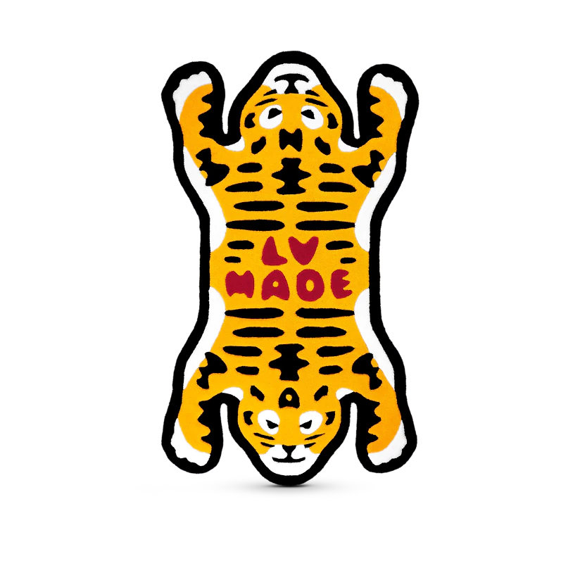 這款Nigo老虎地毯是一款矚目出眾的家居裝飾品,綴有Louis Vuitton與Nigo聯合限量系列的其中一款主打圖案。老虎圖案上飾有LV MADE浮雕標誌,而字母「A」及「N」則化身在老虎的斑紋之中,分別代表設計師Virgil Abloh與Nigo,而這款純羊毛地毯以全人手織製。