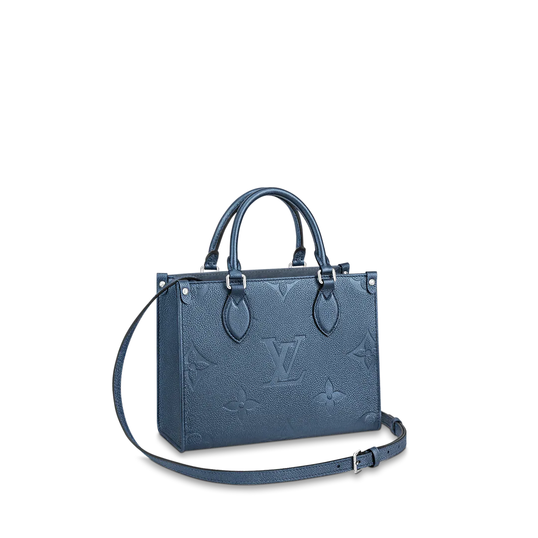 這款OnTheGo PM小型托特包以閃爍及歡快的海軍藍色Monogram Empreinte牛皮製作,綴有特大的Monogram壓花圖案。這個尺寸較小的OnTheGo可存放各種日常用品,包括iPad Mini、手機及錢包。托特包可以Toron手柄作手提攜帶,或以可調節長度的可拆式肩帶作肩背或斜背攜帶。