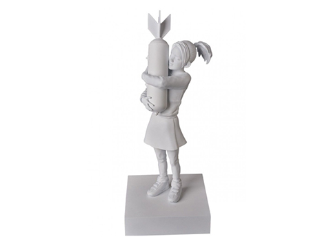 《Bomb Hugger》立體化,綁著小馬尾、天真無邪的女孩洋溢著笑臉,懷裡卻緊抱著的卻是一枚巨大的飛彈,強烈地表現出班克斯反戰的理念,喜歡班克斯、或是特愛黑色幽默風格的玩具人千萬別錯過這經典的作品摟~