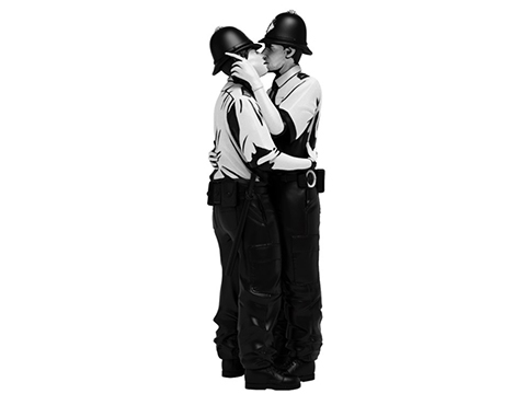 Kissing Coppers是一個Banksy模具,其中描繪了兩名英國警察在接吻。它最初於2004年在布萊頓的阿爾伯特親王王子酒吧的牆上揭幕,由於班克斯(Banksy)作為挑釁性的街頭藝術家和激進主義者而聲名狼藉,因此受到了廣泛關注。Kissing Coppers經常被視為Banksy最著名的作品之一,以至於在倫敦其他藝術博覽會上被選為最具標誌性的英國藝術品。